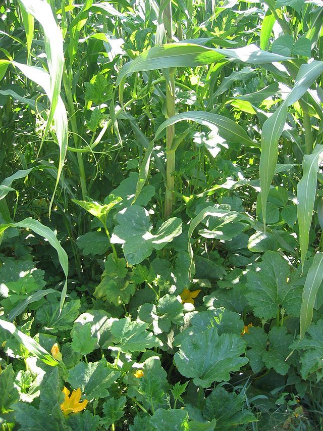 Outre les solanacées, nous démarrons aussi les plantations de milpa. Autrement nommée les trois sœurs, cette technique de culture empruntée à la tradition amérindienne, associe maïs, haricot grimpant et courge. La culture conjointe de ces trois plantes compagnes présente plusieurs avantages qui profitent à la culture de chacune. Les plants de maïs servent de treille aux haricots grimpants, et les haricots fixent l'azote bénéfique à la croissance du maïs. Quant aux courges qui rampent, elles protègent le sol contre l'érosion hydrique et éolienne !