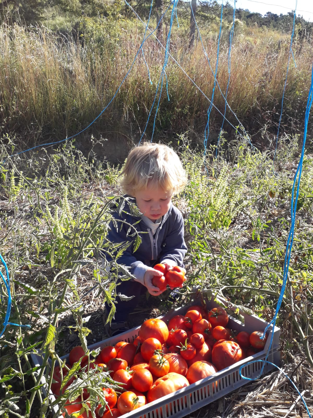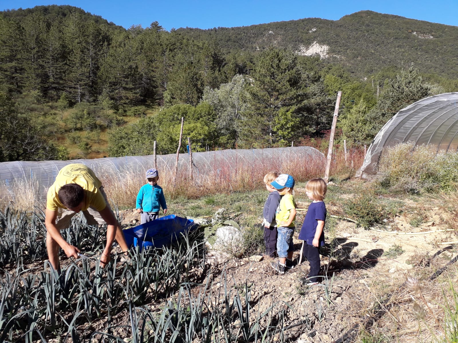 Chaque jour ou presque, une des assistantes maternelles sillonne les petits sentiers du col avec un groupe de 2 à 4 enfants. Et cette fois-ci, les enfants en ont profité pour participer aux récoltes du jour.